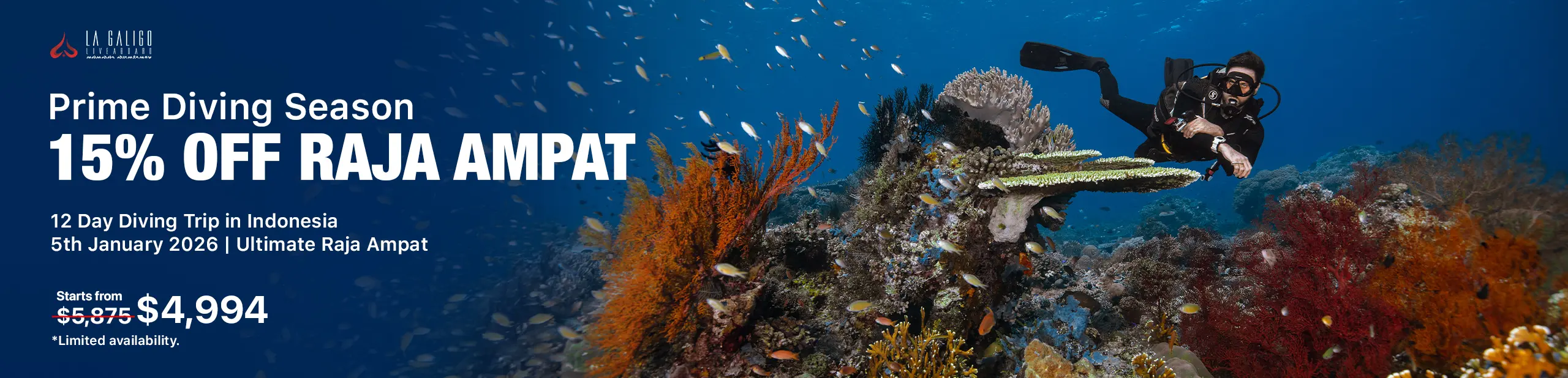 Get 15% OFF of your dive trips on Raja Ampat’s Prime Season and explore the archipelago with La Galigo Liveaboard